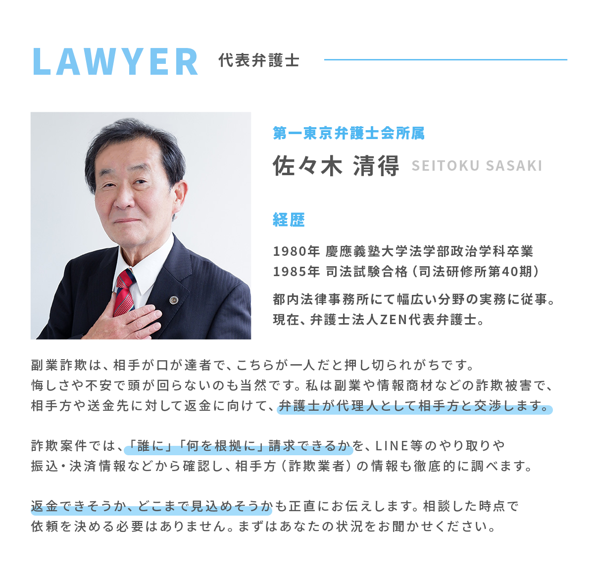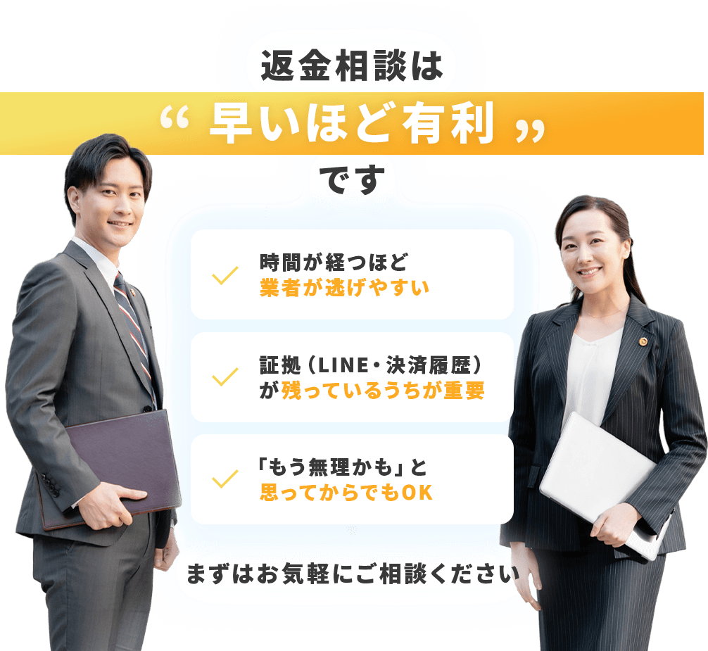まずは状況を伺い、返金の見込み、取れる手段、かかり得る費用や注意点をわかりやすくお伝えします。